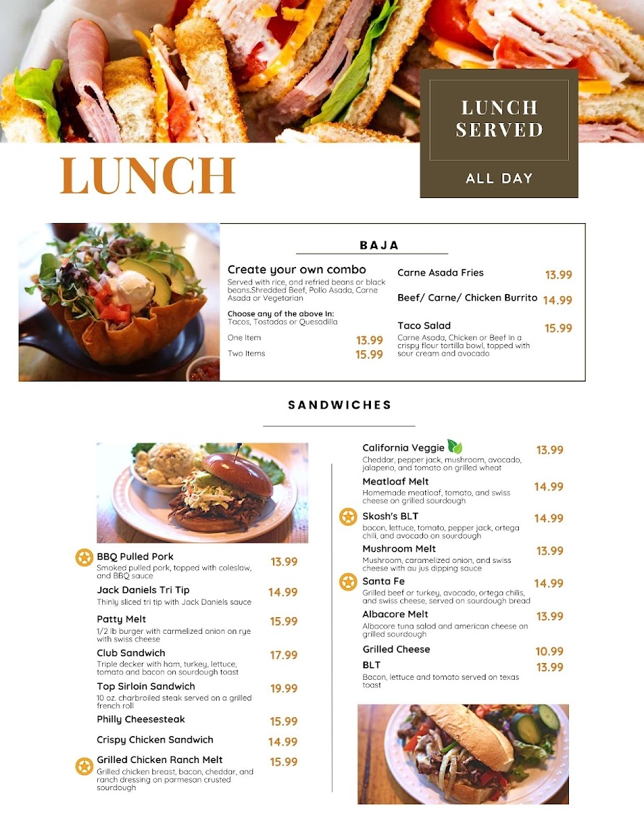 Grilled beef or turkey, avocado, Ortega chili's, swiss cheese served on sourdough bread. Choice of side.